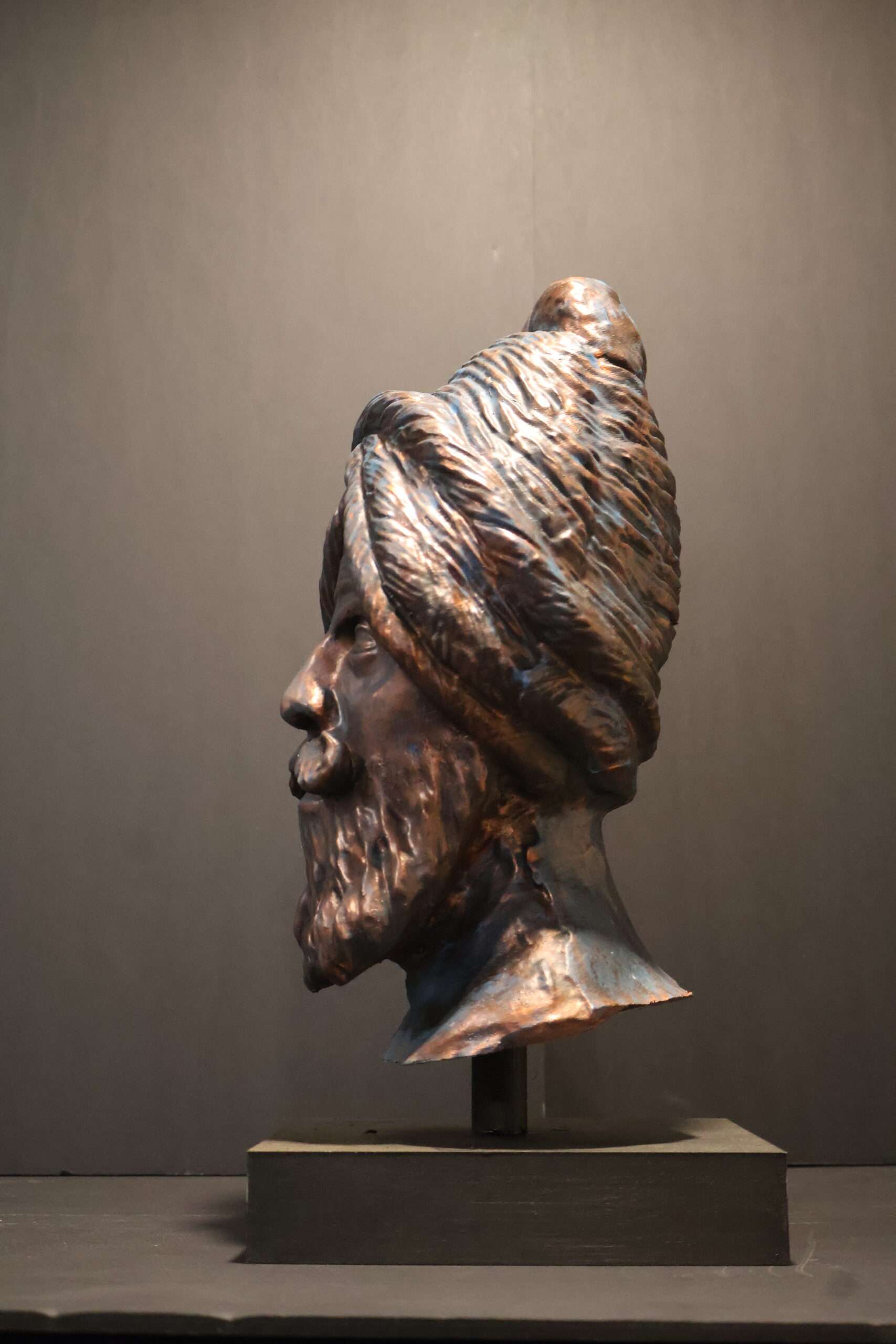 Expertly sculpted by hand, this piece is more than just decor; it is a tribute to the warrior’s journey. The deep bronze and copper tones dance across the intricate details of the beard and headwrap, creating a sense of history and gravitas that serves as a powerful focal point for any home or office.